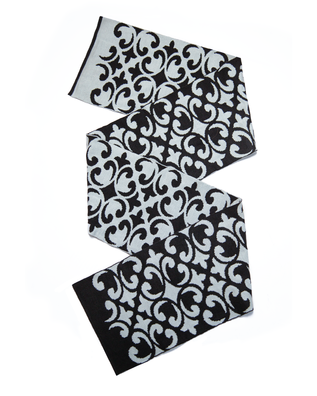 Bufanda en lana de color negro y gris inspirada en los azulejos tradicionales.