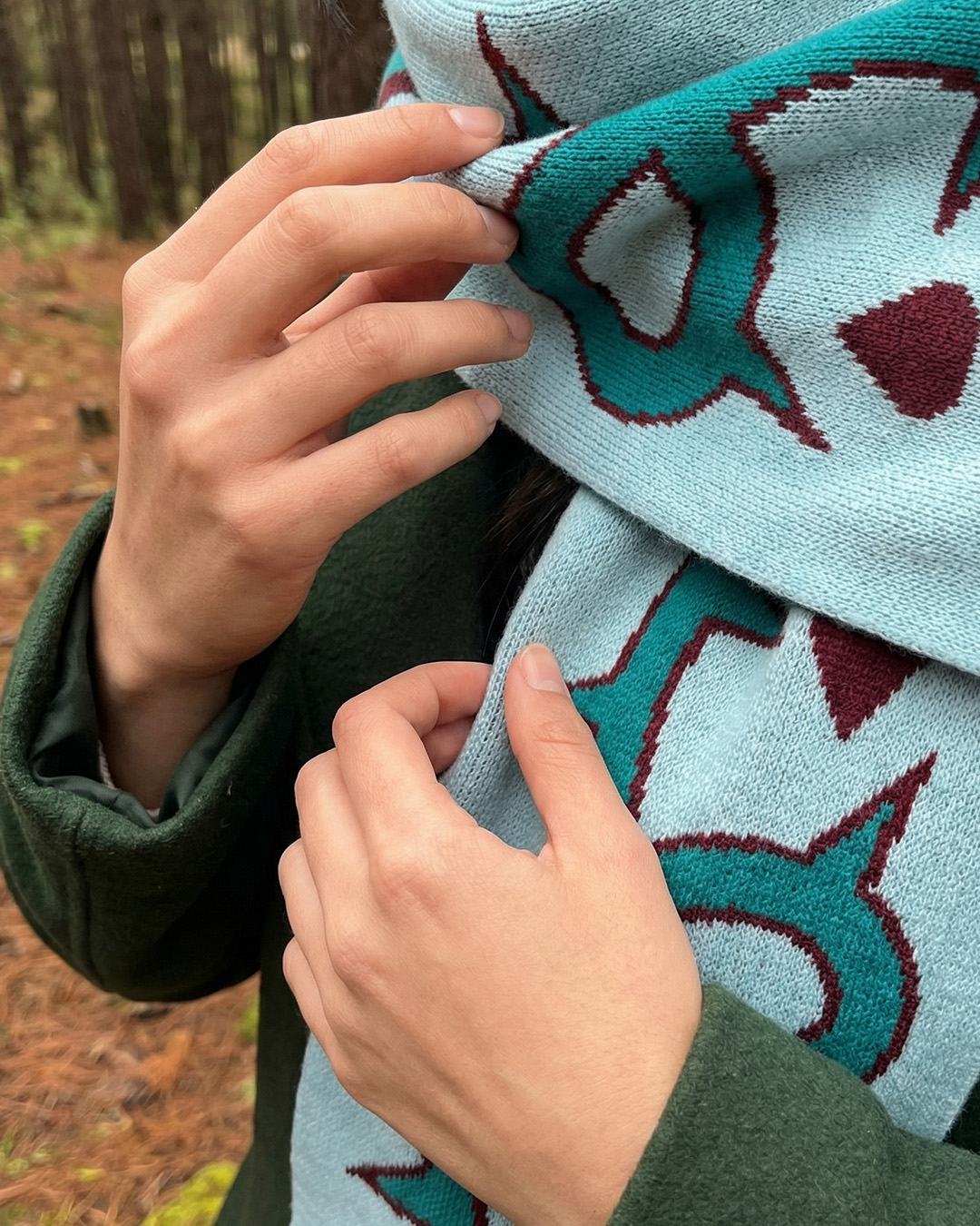 Bufanda en lana 3 colores, azul claro, agua marina y vinotinto, Medidas de 1.80mts x 25cm